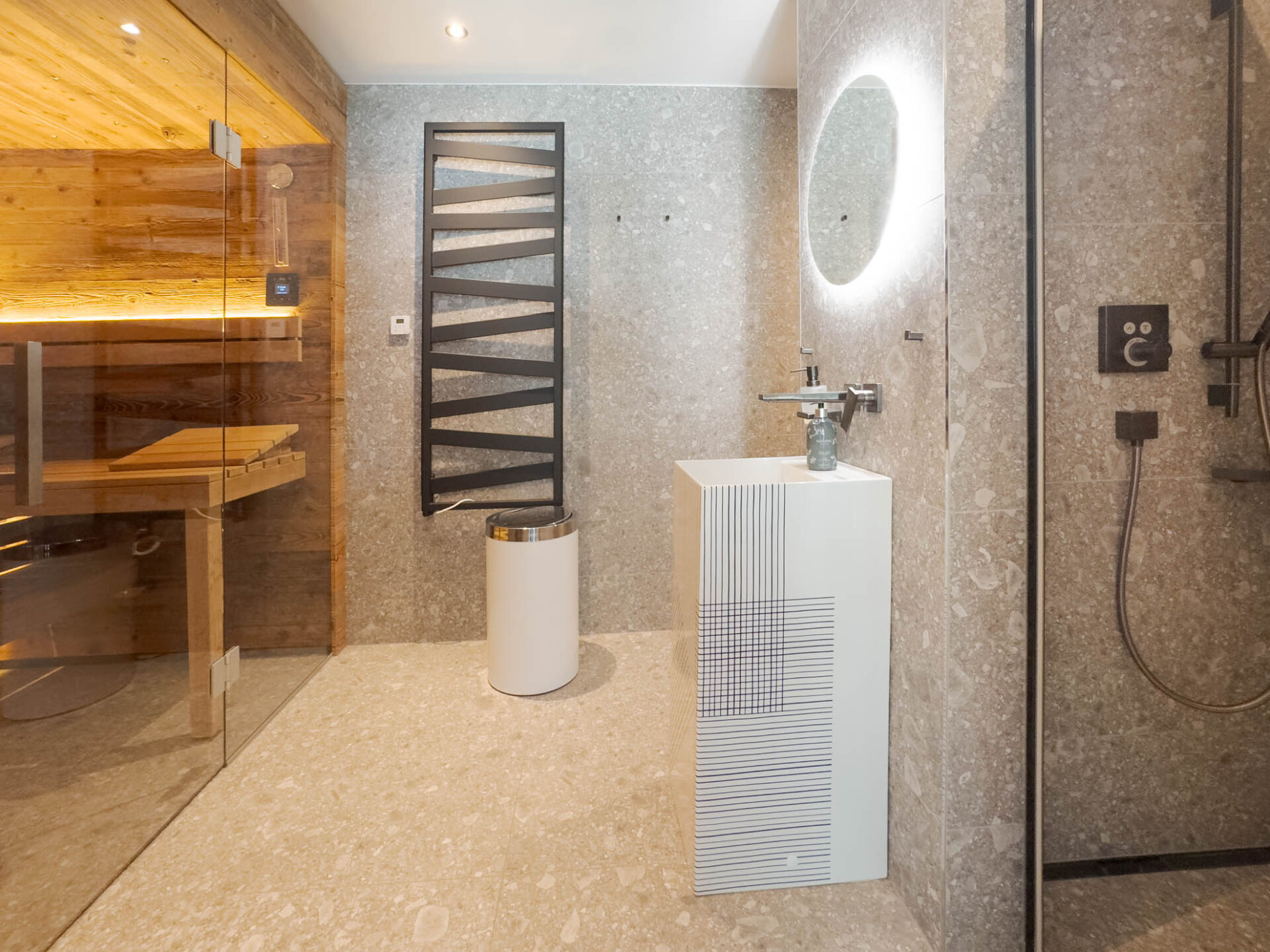 Die private Zone ist klar gegliedert und konsequent auf Komfort ausgelegt. Mehrere Schlafzimmer, hochwertige Bäder sowie eine integrierte private Sauna machen das Penthouse zu einem Ort des Ankommens und Abschaltens – unabhängig von Jahreszeit oder Nutzung.