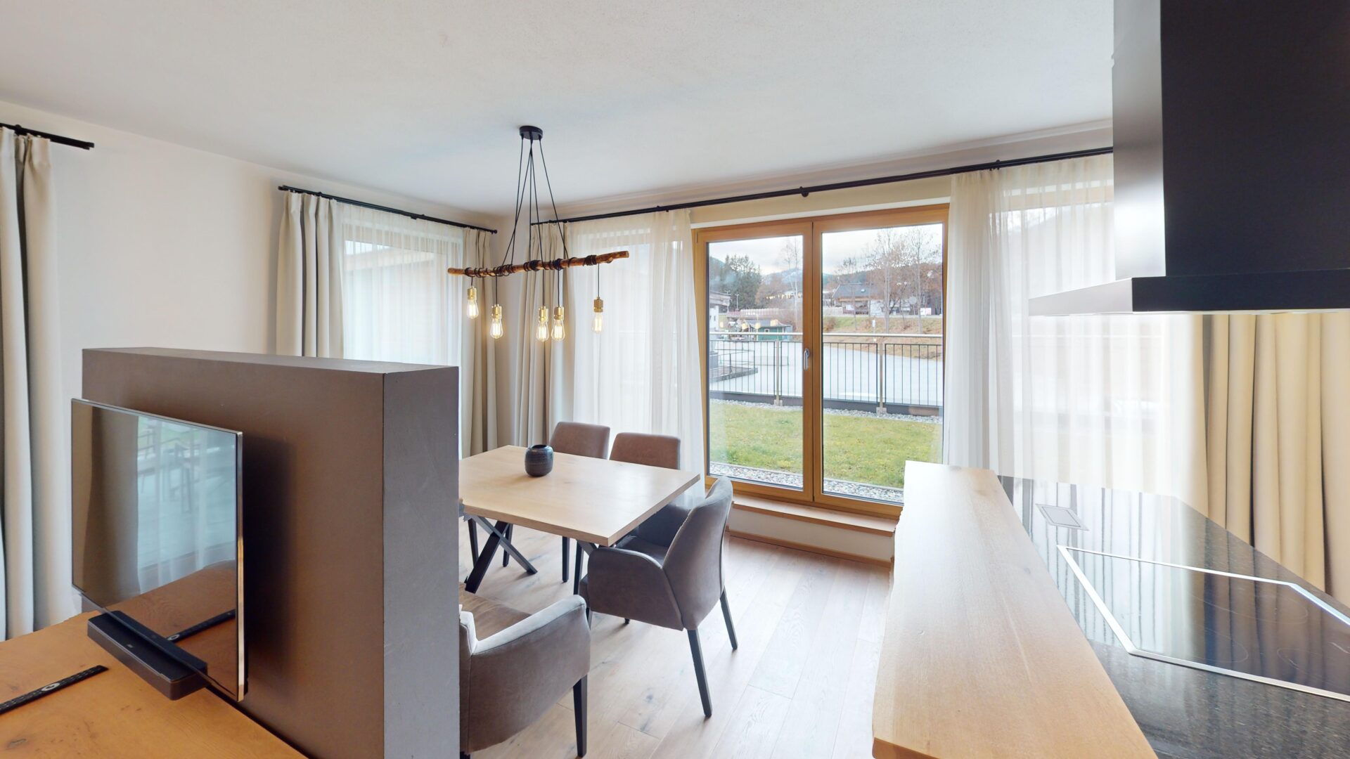 Das Apartment wird vollständig möbliert übergeben. Warme Holzböden, hochwertige Materialien und ein geschmackvolles Interieur schaffen eine alpine Atmosphäre voller Luxus und Behaglichkeit.Ganzjahresdestination