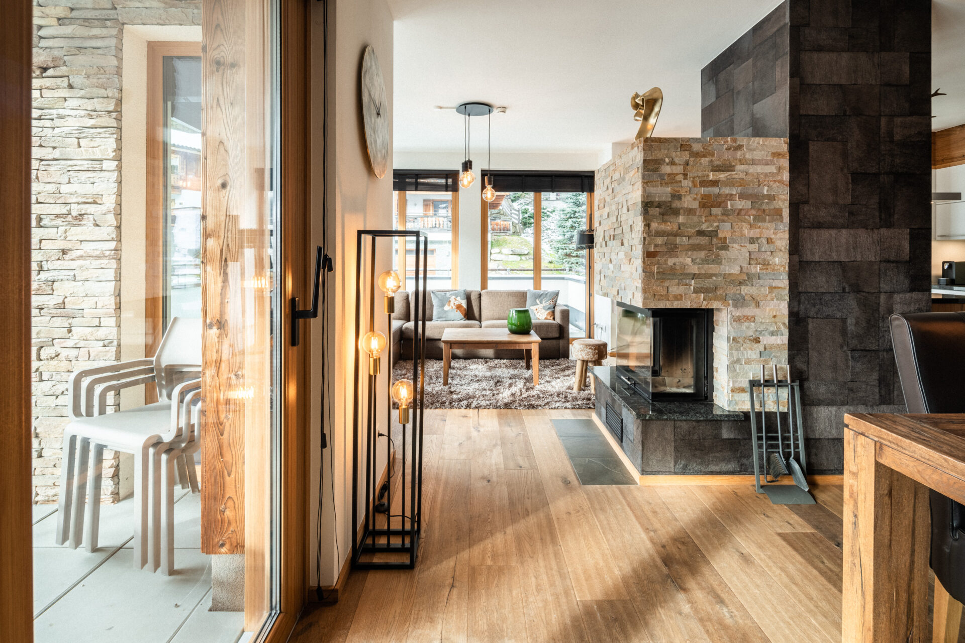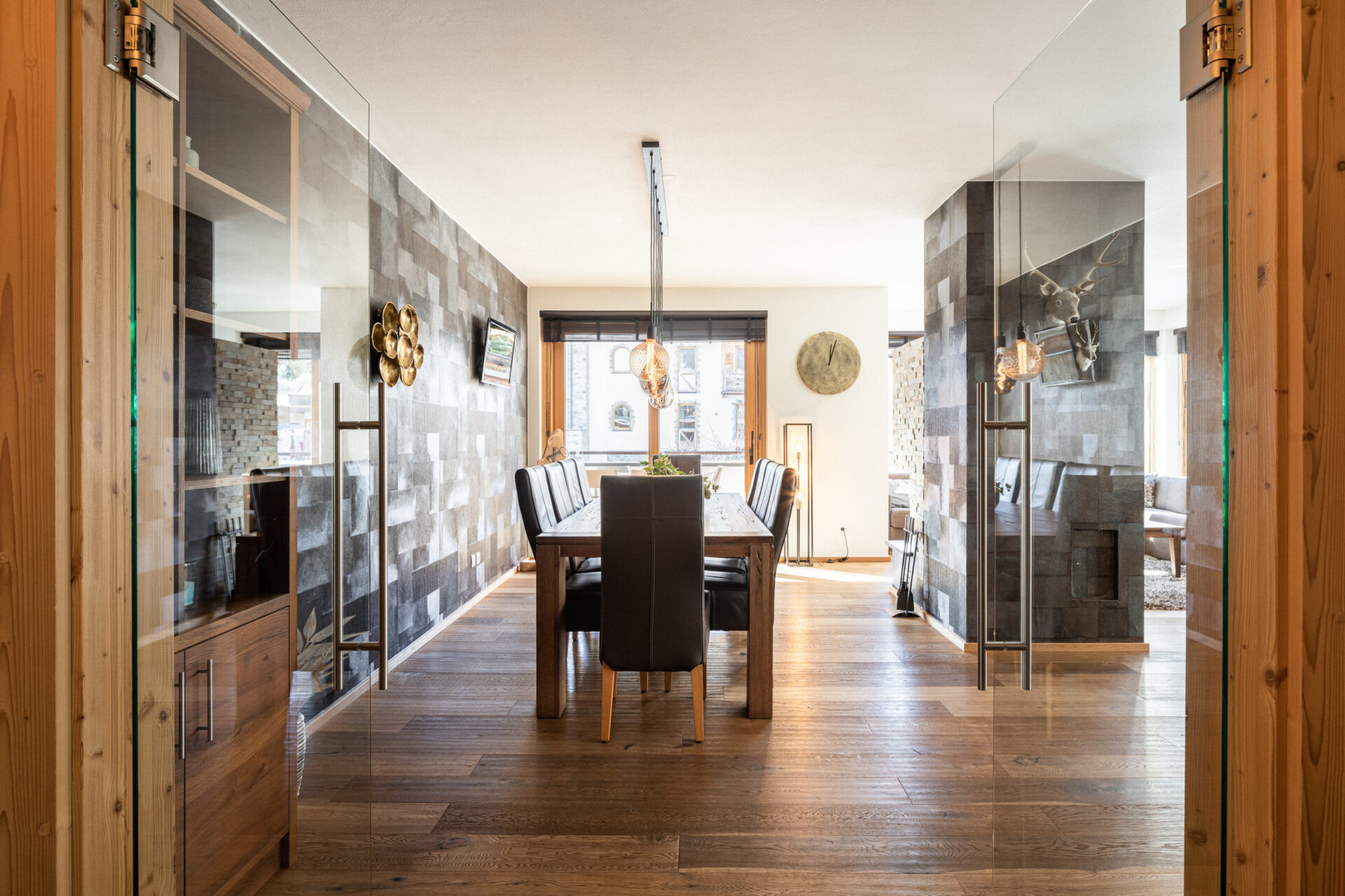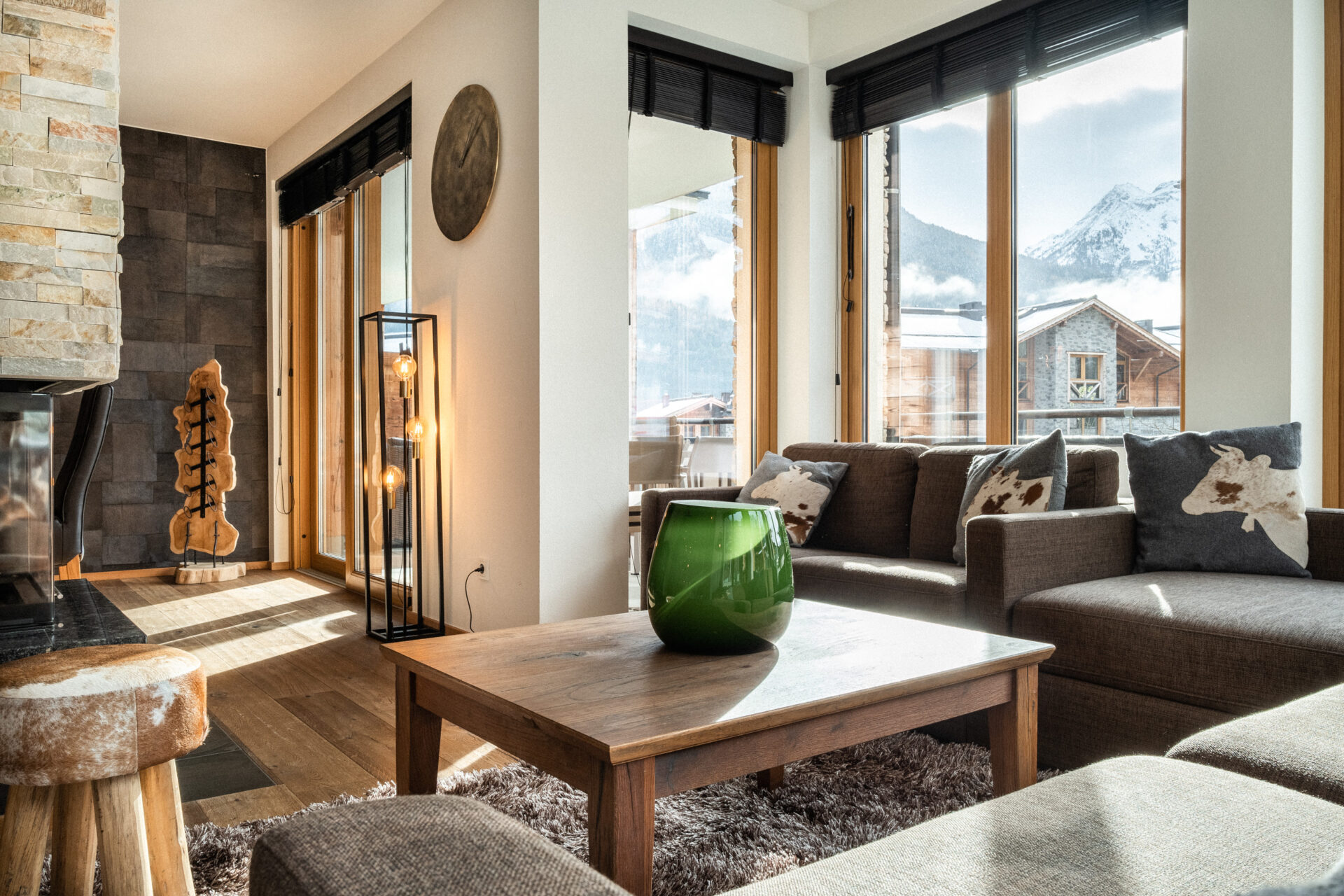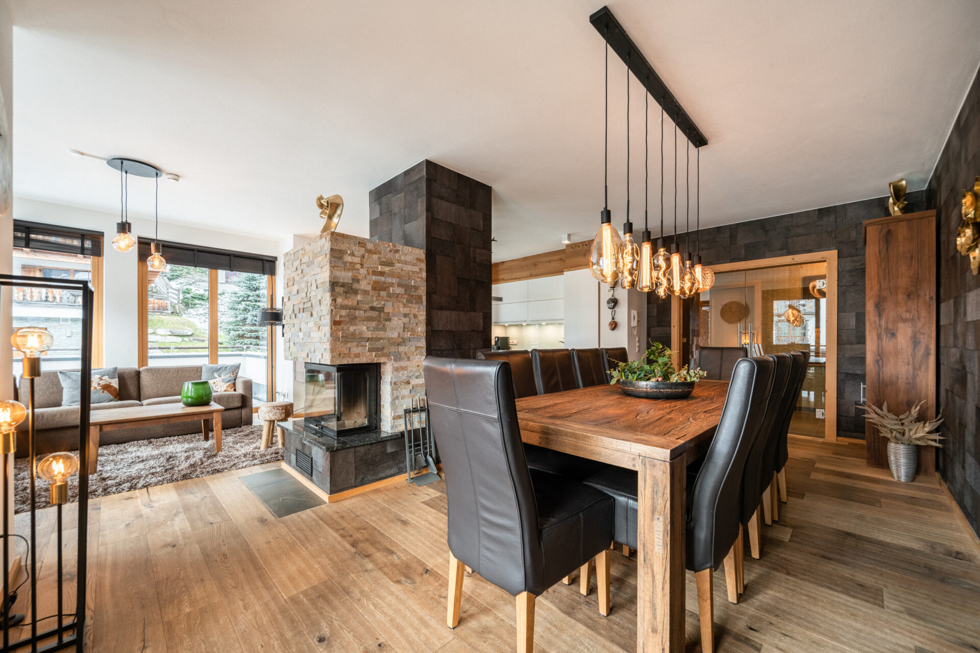 Der helle Wohnraum mit hochwertiger Küche, warmen Holzböden und natürlichen Materialien bildet das Herz des Apartments – ein Ort, an dem alpine Atmosphäre und modernes Design harmonisch aufeinandertreffen. Große Fensterfronten bringen Licht und Ausblick nach innen, während die durchdachte Raumaufteilung mit drei Schlafzimmern und zwei Bädern Komfort und Privatsphäre gewährleistet.