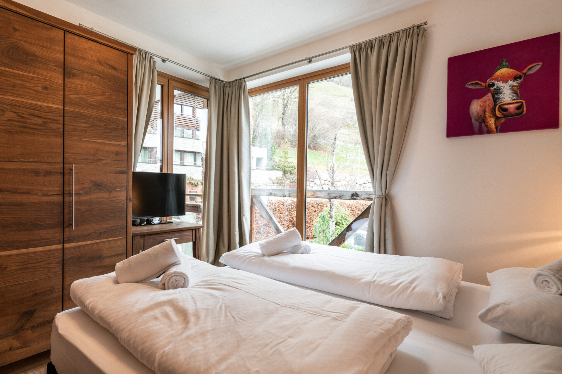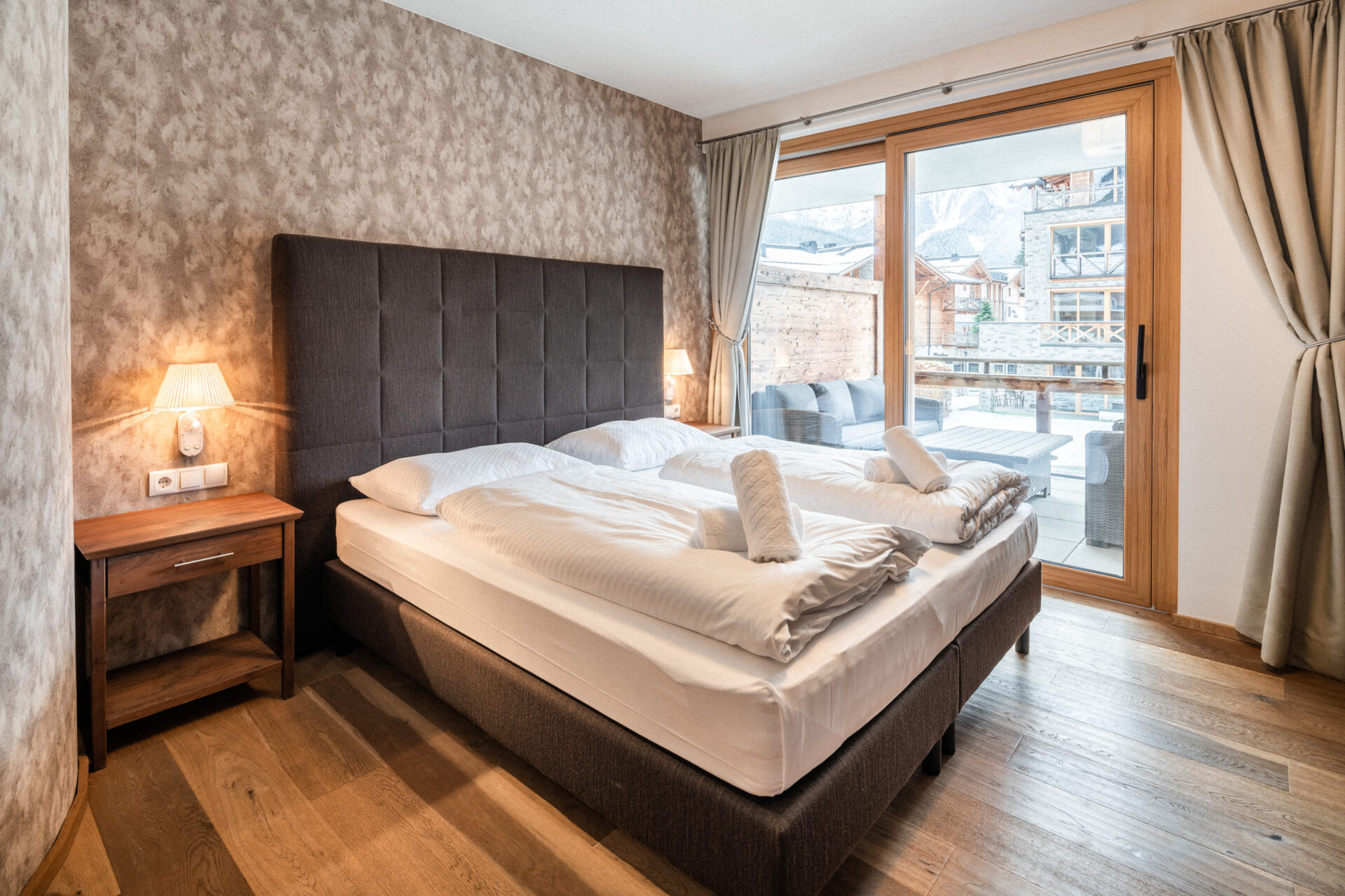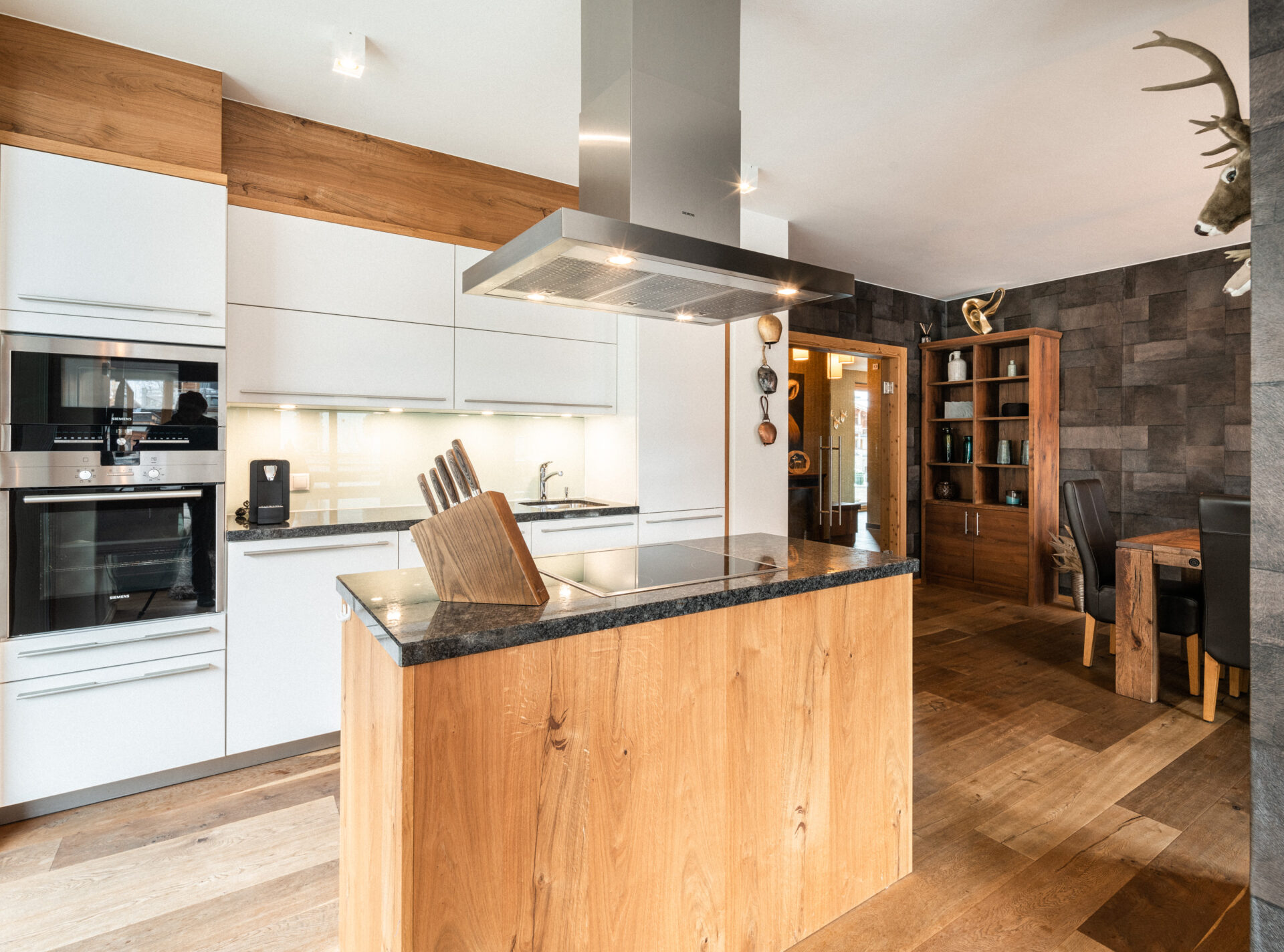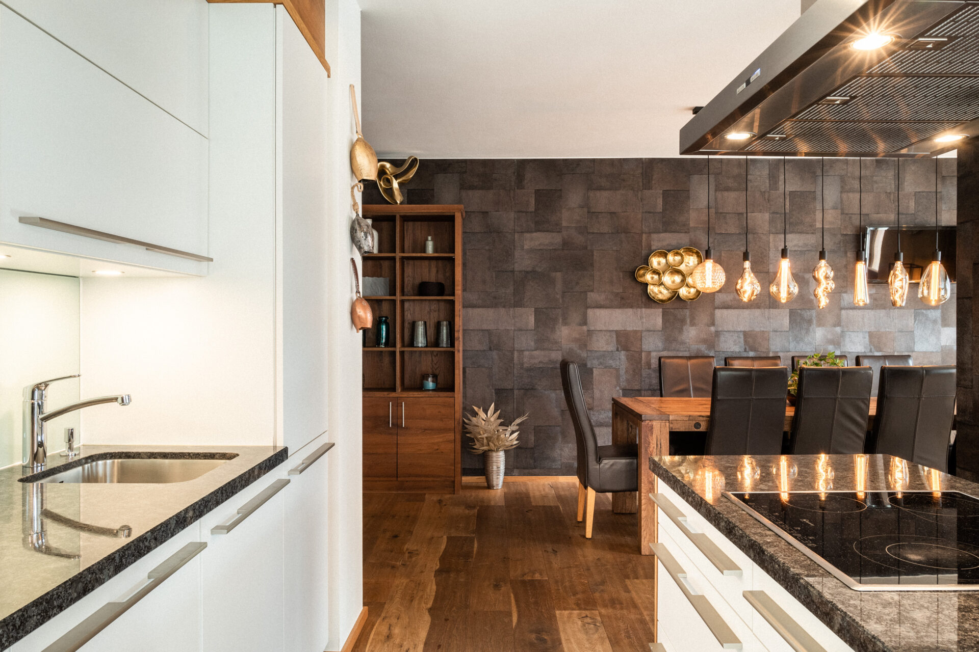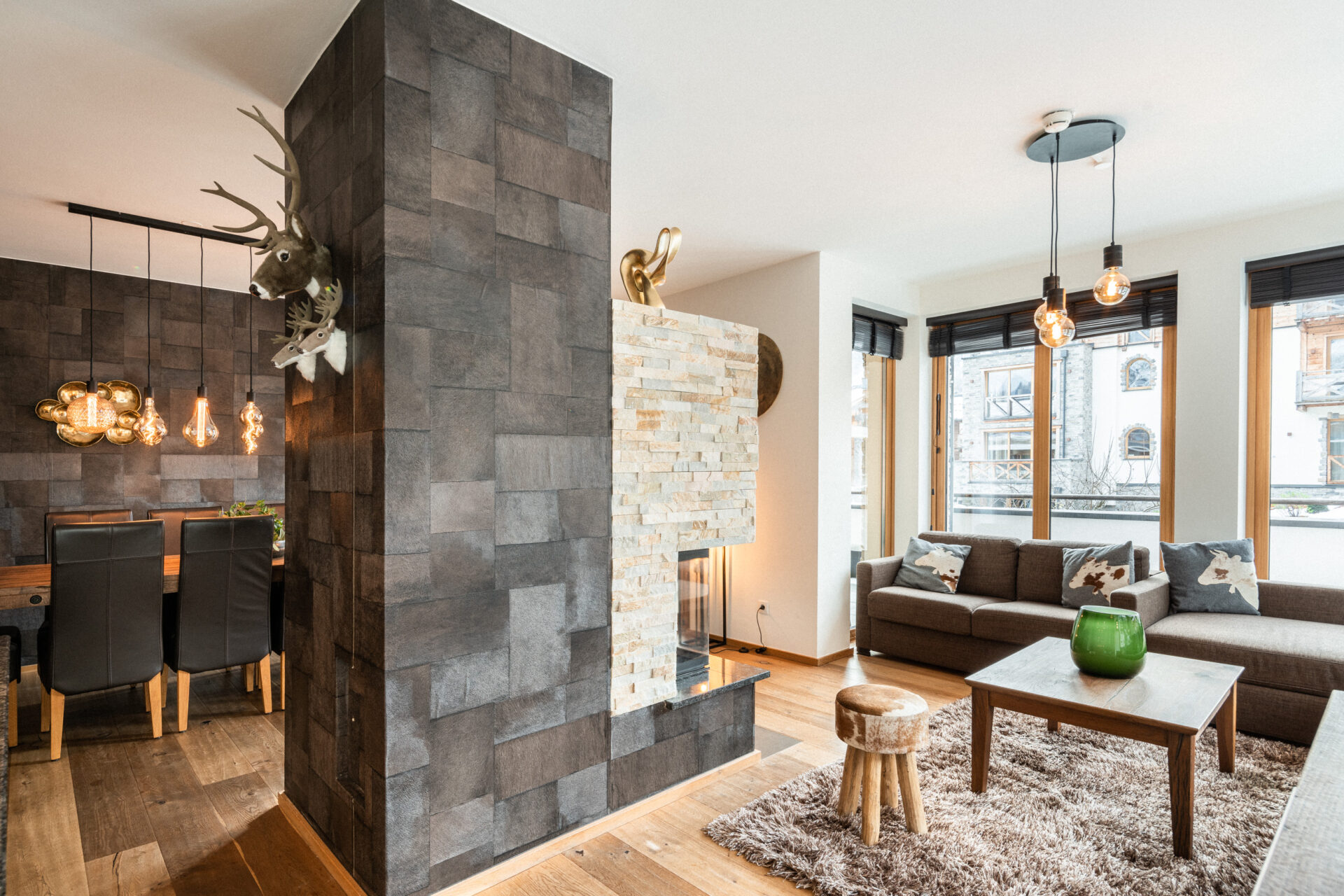 Der helle Wohnraum mit hochwertiger Küche, warmen Holzböden und natürlichen Materialien bildet das Herz des Apartments – ein Ort, an dem alpine Atmosphäre und modernes Design harmonisch aufeinandertreffen. Große Fensterfronten bringen Licht und Ausblick nach innen, während die durchdachte Raumaufteilung mit drei Schlafzimmern und zwei Bädern Komfort und Privatsphäre gewährleistet.