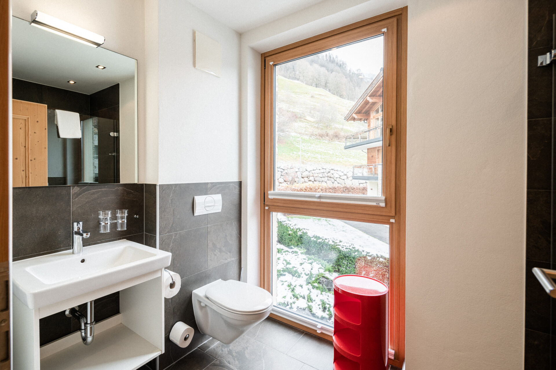 Die großzügige Terrasse und die Außenfläche von insgesamt fast 66 m² erweitern den Wohnbereich und laden zum Entspannen in der klaren Bergluft ein.