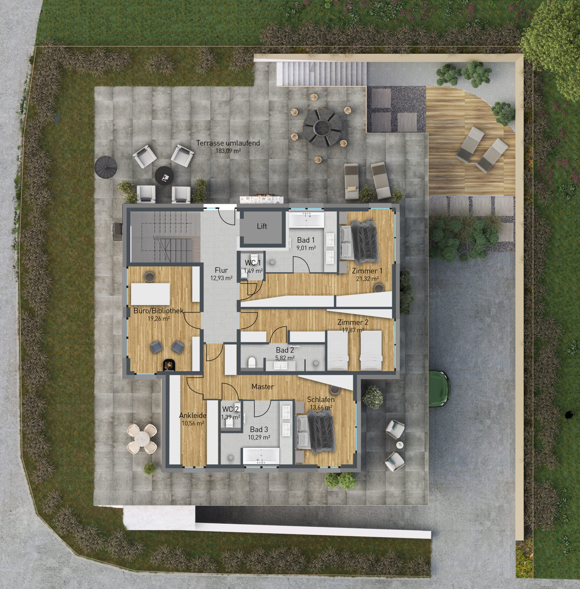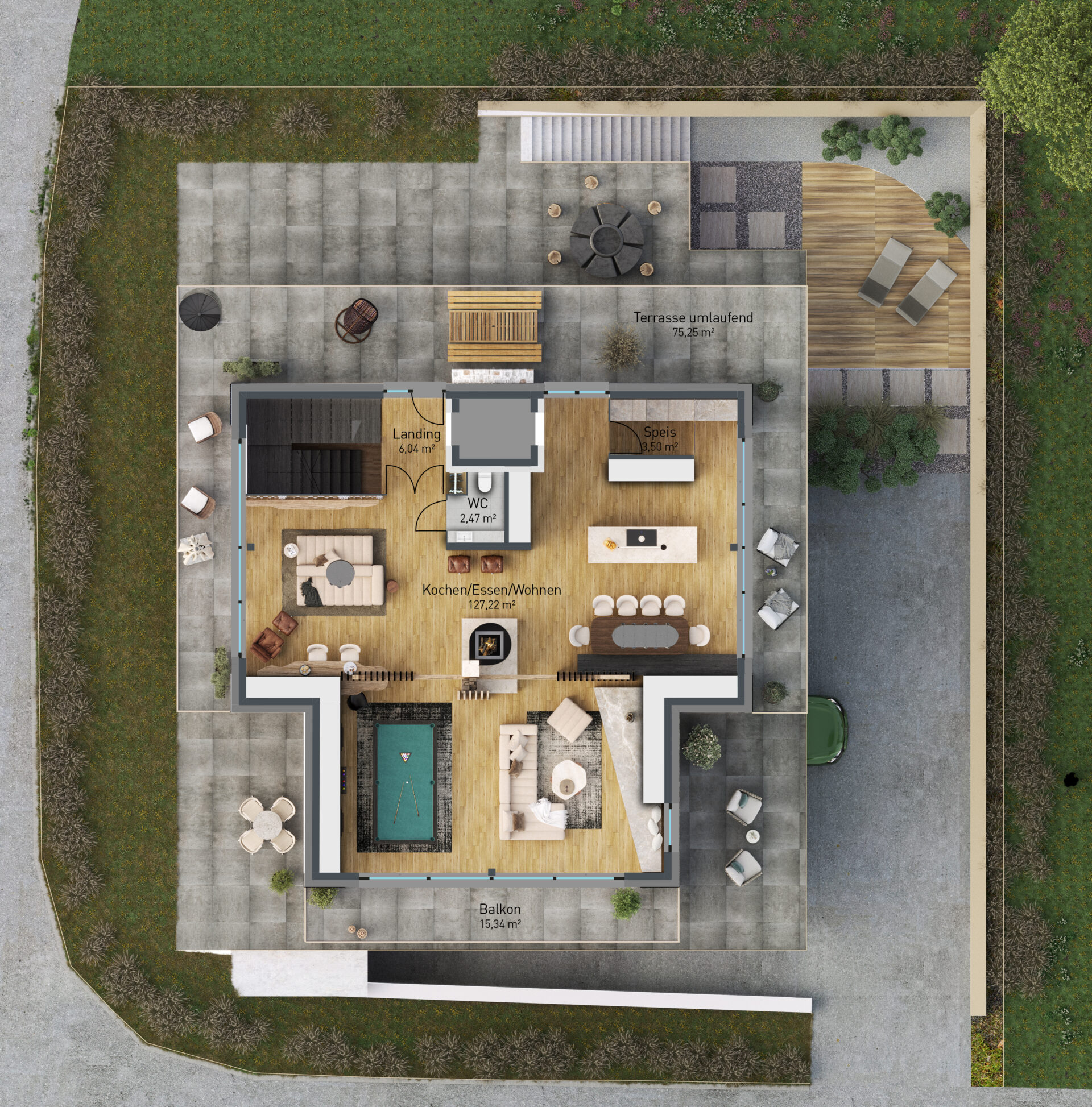 Residenz 273 steht für ein Zuhause, das Raum und Weite neu definiert. Die Zahl verweist auf die außergewöhnlichen 273 m² Panoramaterrassen – mehr als eine Fläche, vielmehr eine Bühne für ein Leben zwischen Natur und Architektur. Ein Ort, an dem Design, Komfort und Aussicht ineinanderfließen – und der Name selbst zu einem Symbol für Exklusivität wird.